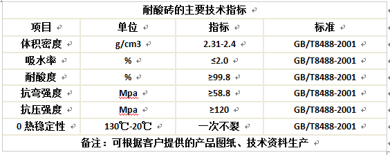 耐酸磚的主要技術(shù)指標(biāo):